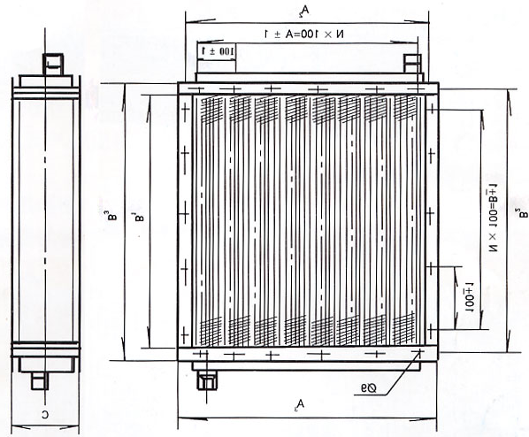 ◎SRL 型北方散热器在顺气流方向分二排管与三排管排列,其型号举例如下: